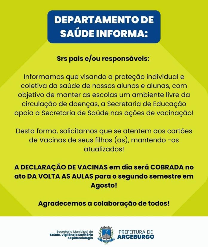 Para garantir a proteção da saúde de nossos alunos e manter as escolas seguras, a Declaração de Vacinas em dia será exigida no retorno às aulas do segundo semestre, em agosto.