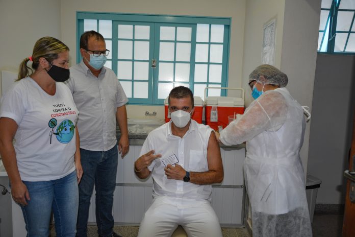 O Bioquímico Sebastião Barreto Neto, foi a primeira pessoa a ser vacinada contra a Covid-19 em Arceburgo. A imunização ocorreu na tarde desta quarta-feira (20) no Posto de Vacinas, poucas horas após a chegada das 50 doses da CoronaVac ao município, com o apoio da Policia Militar. A enfermeira Silvana Faraco (chefe da epidemiologia do município) foi a profissional responsável pela imunização. O Prefeito Gilson Mello e Tatiana Bevilacqua (Diretora de Saúde) participaram do ato. A primeira mulher a ser vacinada no município foi a auxiliar de enfermagem Tatiane Ap. Marques Miguel Silvério.
