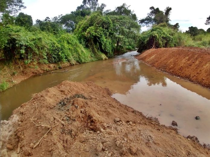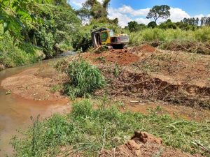 Serviço garante o aceleramento do escoamento do córrego através do desassoreamento de seu leito.
