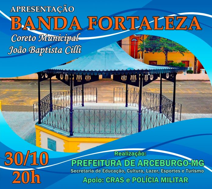 Amanhã, sábado, a partir das 20 horas a Banda Fortaleza irá se apresentar no Coreto Municipal João Baptista Cilli.