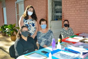 Durante a entrega as equipes gestoras/pedagógicas das unidades reforçam as orientações referentes aos protocolos sanitários, evitando aglomerações, fazendo escalonamentos entre os servidores que precisarem trabalhar na realização dessas entregas, mantendo o distanciamento social, utilização constante de álcool em gel e higiene respiratória.