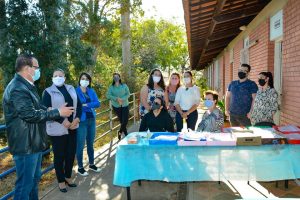 O prefeito Gilson Mello e sua equipe administrativa da educação Rosangela Peres (Secretária Municipal) e Margareth Anacleto (Diretora Administrativa) acompanharam o trabalho das professoras da instituição.