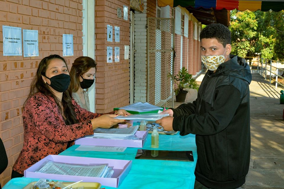 Durante a entrega as equipes gestoras/pedagógicas das unidades reforçam as orientações referentes aos protocolos sanitários, evitando aglomerações, fazendo escalonamentos entre os servidores que precisarem trabalhar na realização dessas entregas, mantendo o distanciamento social, utilização constante de álcool em gel e higiene respiratória.