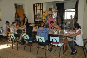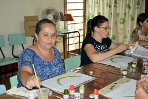 Também aprendem técnicas para pintura em guardanapos, toalhas e tapetes.
