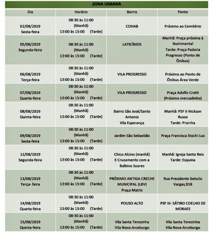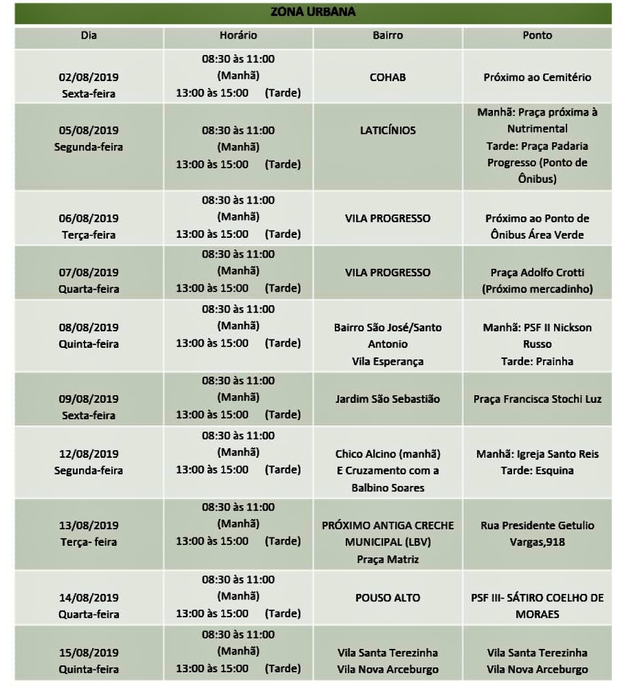 Totalmente gratuita, a vacina será aplicada nos animais em diversos pontos da cidade, conforme dia e horário especificados. A vacinação na zona rural já está finalizando, tendo até agora sido vacinados 935 cães e 241 gatos, num total de 1.176 animais.
