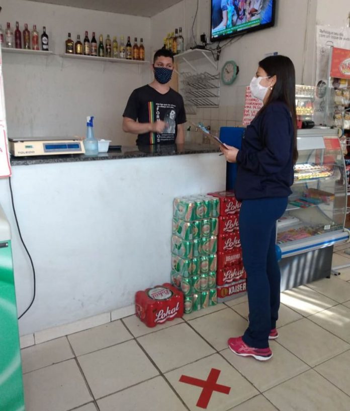 Instruídas, capacitadas e educadamente, as agentes de saúde envolvidas percorreram os estabelecimentos comerciais de diversos bairros da cidade levando orientação e tirando dúvidas dos comerciantes. As vistorias têm caráter orientativo e não punitivo. A proposta é esclarecer que o descumprimento das regras estabelecidas em decreto municipais e estaduais, podem gerar punições aos infratores. Outras principais orientações são sobre a higienização dos clientes, uso de EPI dos funcionários, aglomerações nos comércios. A Prefeitura Municipal continua seguindo todas as recomendações do Ministério da Saúde e Secretaria de Estado de Saúde.