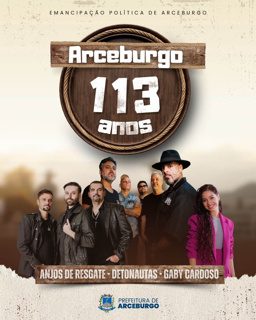 Uma grande festa e, especialmente, muita animação e fé, marcarão a programação de shows alusiva ao aniversário de emancipação político-administrativa do município de Arceburgo, que será comemorado em agosto. O evento, promovido pela Prefeitura de Arceburgo, reunirá uma diversidade de estilos musicais, proporcionando momentos de diversão, lazer, orações e bençãos para pessoas de todas as idades e gostos. A Prefeitura de Arceburgo ao longo dos anos tem buscado contemplar segmentos religiosos do município, na oferta de shows para a comunidade. Nos últimos anos, se apresentaram em Arceburgo: Aline Barros, Rosa de Saron, Regis Danese e Padre Antônio Maria. Os shows de 2024 são alusivos aos 113 anos de Emancipação Político-Administrativa do município. Além dos shows, a Prefeitura preparará uma extensa programação de eventos culturais, esportivos, sociais e institucionais com atividades para todas as idades, gostos e horários. Os shows da Emancipação são as principais atrações do festejo e ocorrerão no Calçadão Municipal Dr Orlando Lodovicci, na Praça Central. Os shows marcam o aniversário de Emancipação de Arceburgo, celebrado no dia 30 de agosto.