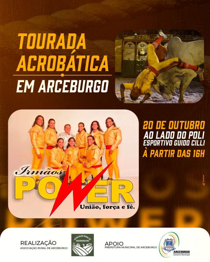 Um dos espetáculos de grande sucesso do Circo Irmãos Power estará em Arceburgo no próximo dia 20 de outubro. A acrobacia com touros proporciona uma grande adrenalina para quem assiste. Nenhum artifício que possa machucar os animais é usado nos números, uma preocupação dos organizadores. Treinamentos diários e muita concentração são fundamentais durante o espetáculo. A acrobacia em touros é um número tradicional executado pela família Power há anos. Os integrantes do circo já participaram de vários programas de televisão, além de atuarem como dubles em filmes nacionais com o número. O evento em Arceburgo é uma realização da Associação Rural e da Prefeitura Municipal.