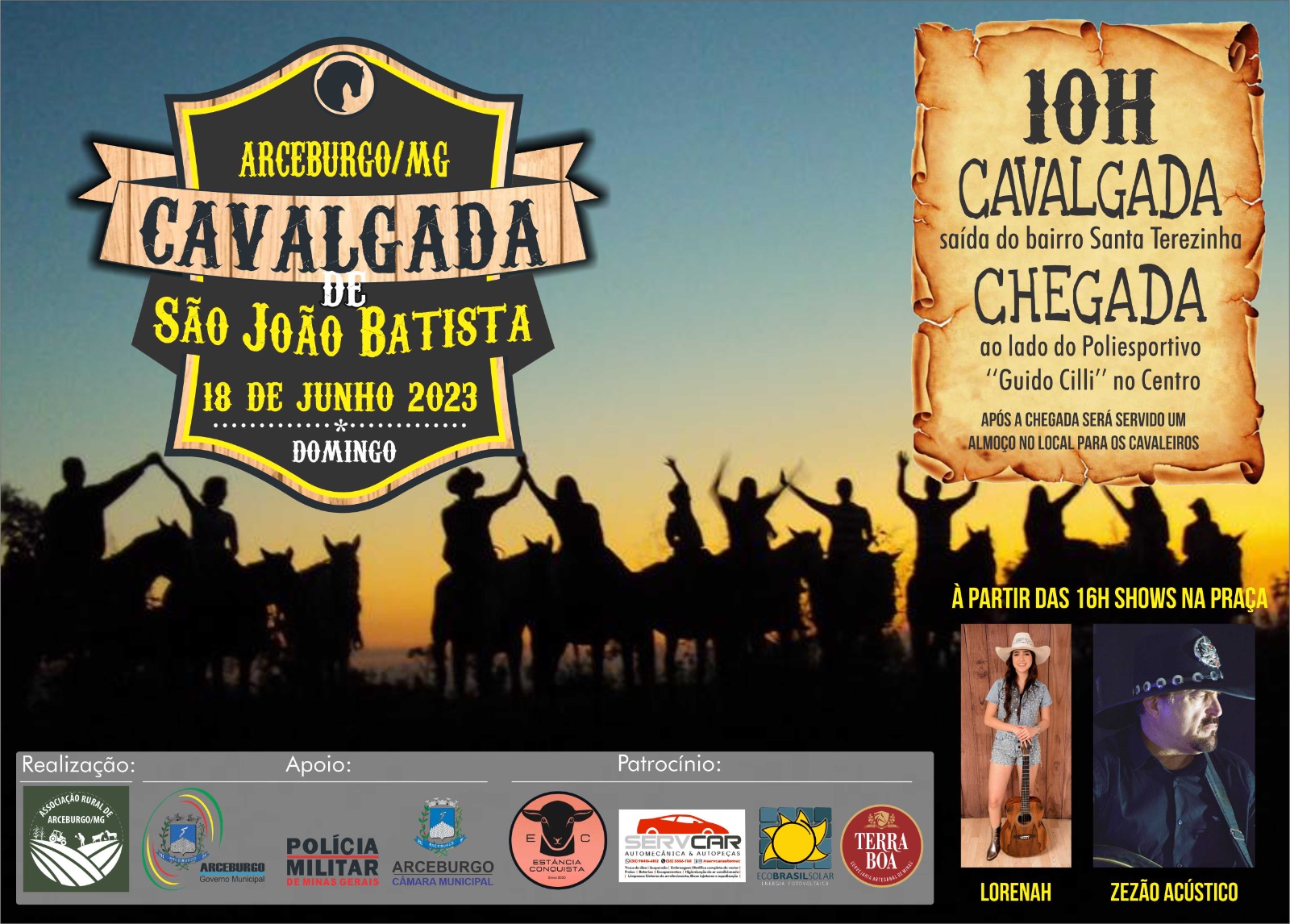 A Cavalgada é uma realização da Associação Rural de Arceburgo e conta com o apoio da Prefeitura Municipal, Câmara de Vereadores, Policia Militar, além dos patrocinadores.