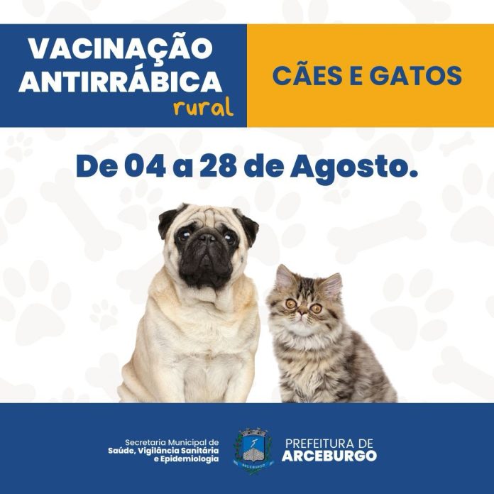 De 04 a 28 de agosto, a equipe da Secretaria Municipal de Saúde estará realizando a vacinação contra a raiva em cães e gatos da zona rural.